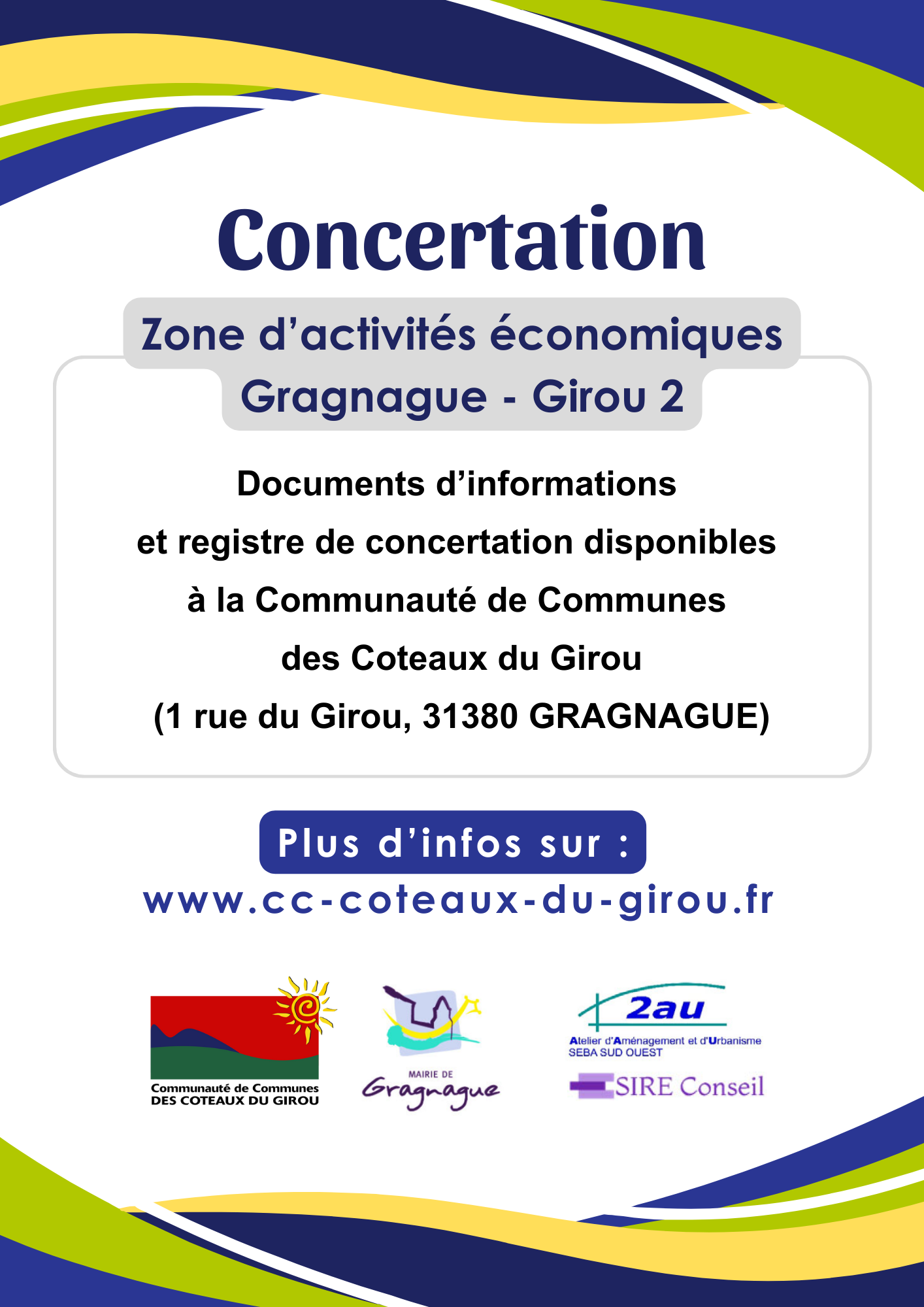 - Des documents d’informations et le registre de concertation sont disponibles à la Communauté de Communes des Coteaux du Girou.