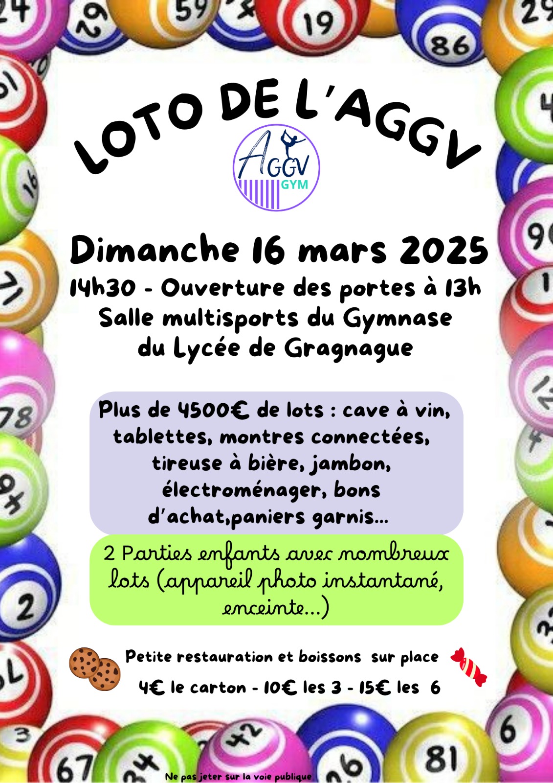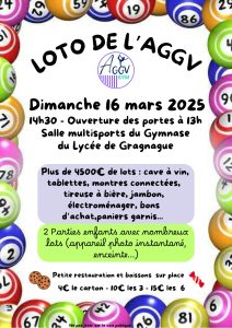 L’association de Gym de GRAGNAGUE, l’AGGV, organise un super loto de printemps le