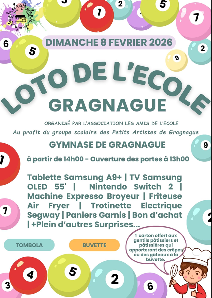 L’association les amis de l’école organise le Loto de L’École de Gragnague